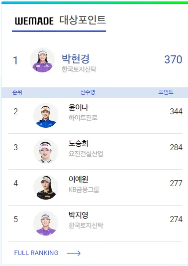 klpga 상금랭킹 순위 최신