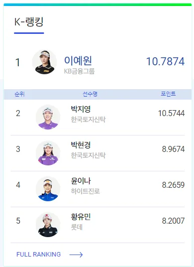 지난 한화 클래식 때 이예원 선수가 선두를 지키지 못해서 아직까지 상금순위 변동은 없는 상태입니다. 하지만 아직 하반기에 KLPGA경기가 많이 남은만큼 언제 순위가 바뀔지 모르기 때문에 실시간 변동하는 KLPGA상금랭킹이 궁금하시다면 아래 KLPGA홈페이지 랭킹 페이지 안내드리니 여기서 확인해 주세요~