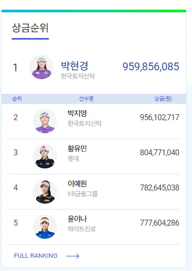 현재 KLPGA 상금랭킹