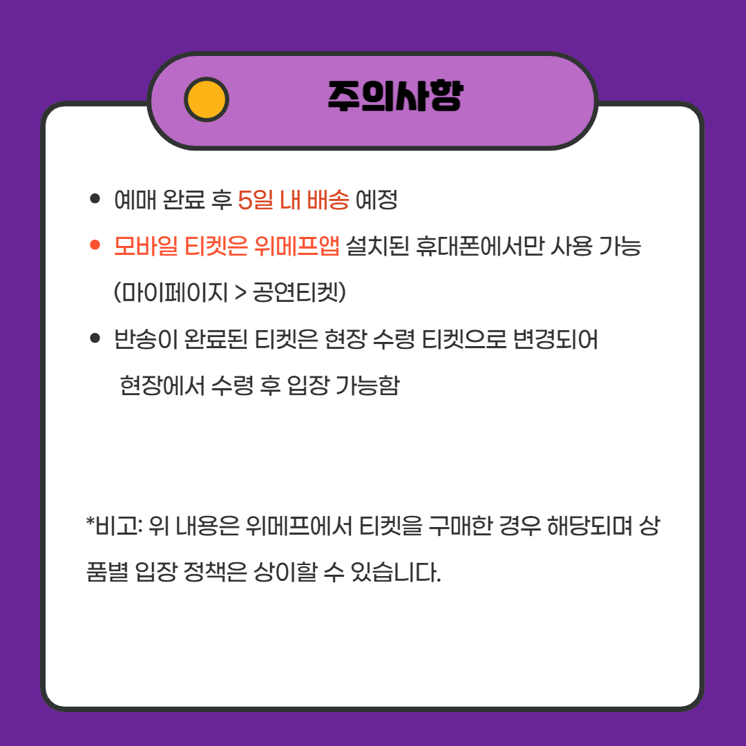 *예매는 위메프에서 현재 가능합니다. 티켓 구매 시 주의사항도 꼼꼼하게 읽어주시길 바랍니다.