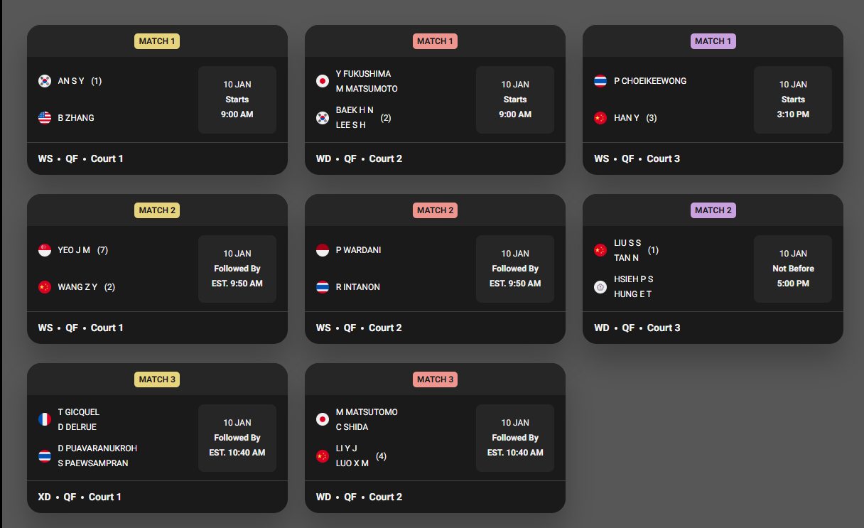 2025년 1월 10일에 진행되는 말레이시아 오픈 배드민턴 대회 주요 경기 일정과 앞으로 진행될 bwf월드 투어 말레이시아 오픈 경기 스케줄 확인할 수 있게 안내드립니다. 아래 링크 들어가시면 경기 일자별로 대진표과 경기시간을 한 눈에 확인할 수 있습니다!