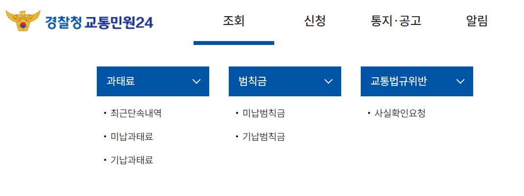 - 메뉴 선택: '교통범칙금 과태료' 메뉴를 선택합니다.
