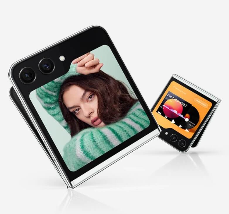 갤럭시 Z플립5· 커버 디스플레이가 두 배 가까이 확장되고 새로운 힌지 기술이 적용되었습니다.  '방진' 기능도 지원하게 되었습니다. 갤럭시 Z플립5에는 후면 듀얼 카메라(1200만 화소 초광각·듀얼픽셀)가 적용됐습니다. 애플리케이션 프로세서(AP)로는 퀄컴의 '스냅드래곤8 2세대'가 탑재되며, 배터리 용량은 플립5가 3700mAh 입니다.