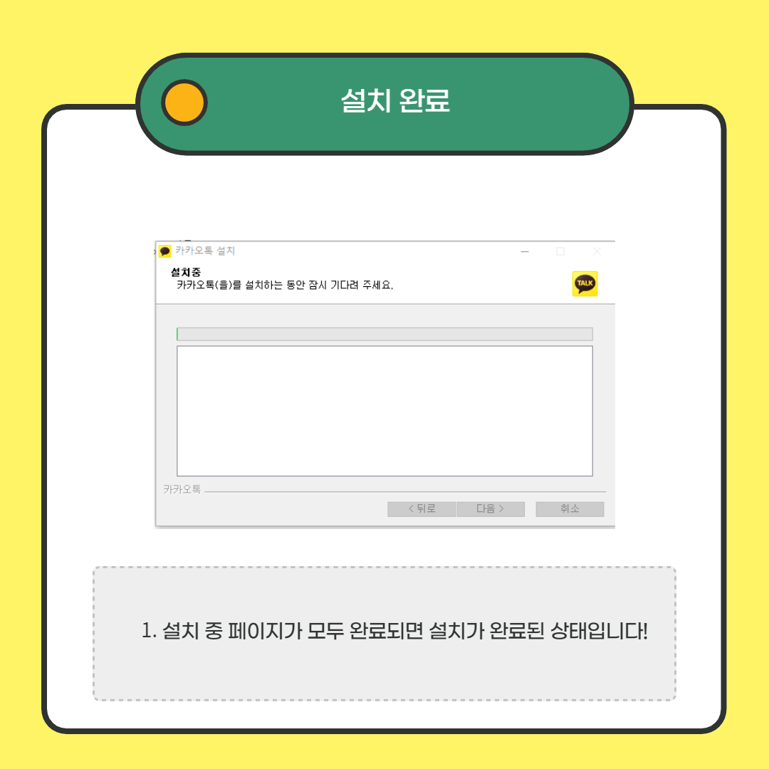 5. 모든 절차에서 '다음'을 눌러주시면 설치중 화면이 뜨고 100% 완료가 되면 닫아주시면 됩니다.