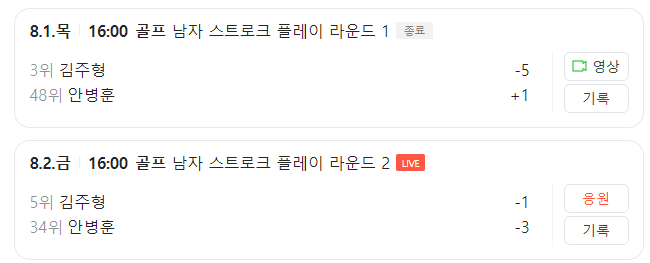| 파리 올림픽 남자 골프 경기 중계 현재순위 (0) | 2024.08.01 |