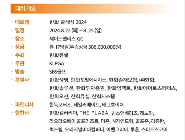 | KLPGA 대회일정 더헤븐 마스터즈 대회정보, 출전선수 조편성 확인 (1) | 2024.08.13 |