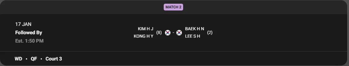 - 다음 BWF 투어 : 다이하츠 인도네시아 마스터스 2025 (1/21 ~1/26)