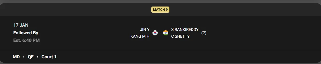 - 대회명: 2025 인도 오픈 배드민턴 선수권 대회