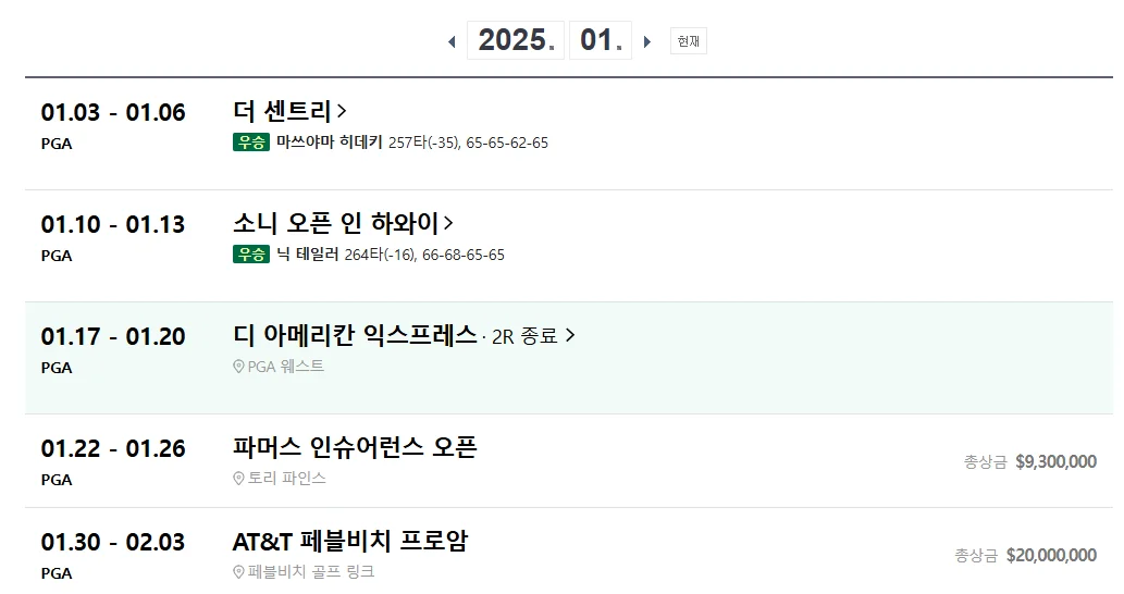 PGA 실시간 스코어 (2025 대회)