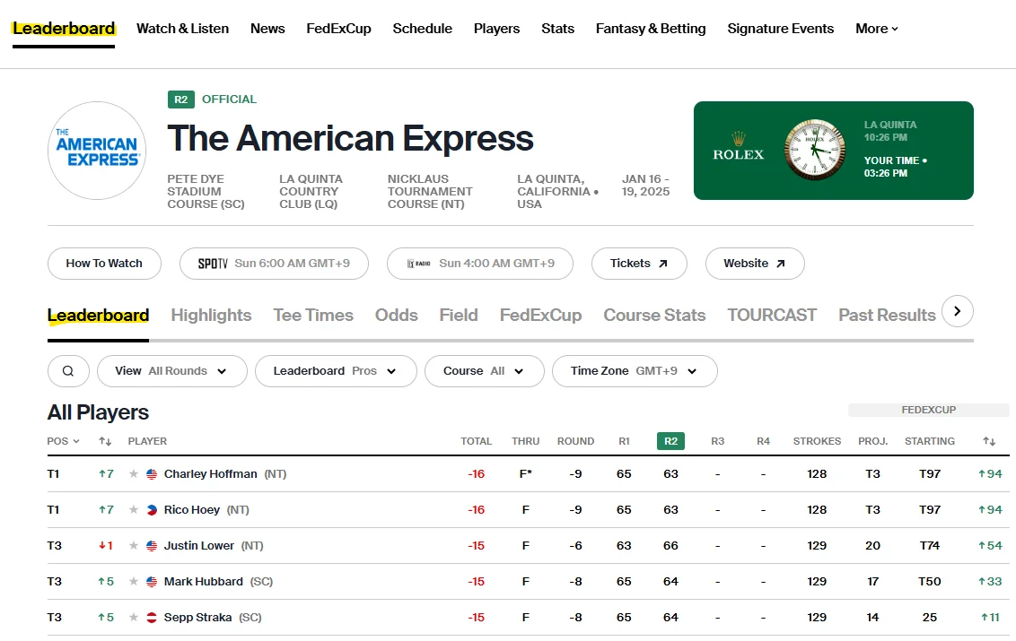 - PGA 공식 웹사이트는 가장 신뢰할 수 있는 실시간 정보를 제공합니다.